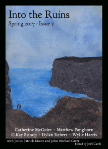 Interested in the magazine? You can subscribe and purchase individual issues on the Into the Ruins website. You can read about the magazine’s philosophy or catch up with its blog. Or you can click on any of the issue covers below to go to the individual issue pages on the Into the Ruins website–or use the links below the covers to purchase issues directly from Figuration Press or buy from Amazon. (Please note the magazines are available through traditional distribution channels, as well, so feel free to ask your local independent bookseller to order copies for you!)
